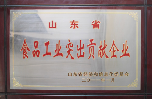 山東省食品工業(yè)突出貢獻(xiàn)企業(yè)